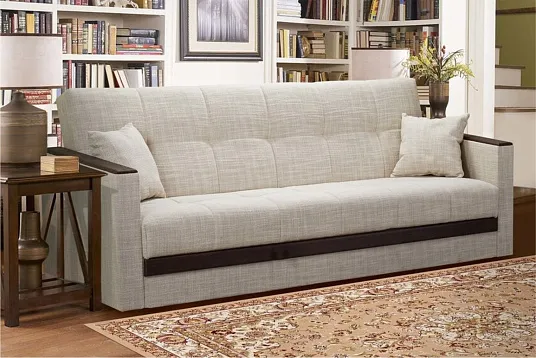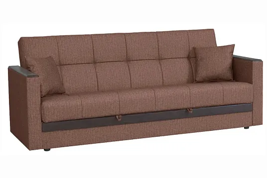 Универсальный трехместный диван может использоваться как центральный объект интерьера. Этот диван станет украшением современного дизайна Вашего дома. Каркас дивана выполнен из древесины хвойных пород влажностью 8 - 10%. Надежный каркас, способствует долговечности Вашего дивана, исключает возможность деформирования. Механизм «Книжка» прост и надежен в эксплуатации (при трансформации требуется расстояние между диваном и стеной, мебель является пристенной). Напольное покрытие в процессе раскладки не задействовано, Вы можете использовать пушистые ковры или дорогие паркеты. Емкость для хранения постельных принадлежностей с ламинированным основанием обеспечит Вам дополнительное пространство для хранения и сэкономит Ваше время при подготовке дивана ко сну.