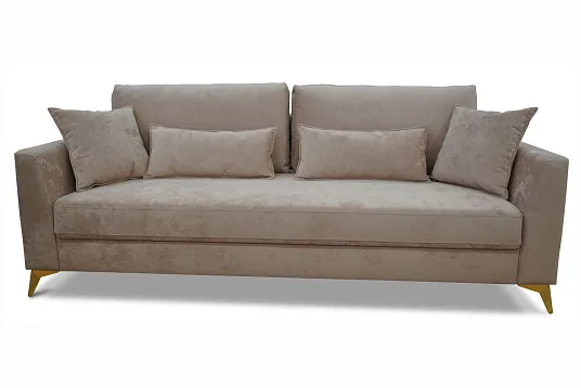 Каркас дивана выполнен из фанеры и хвойных пород древесины, что придаёт ему прочность и долговечность.