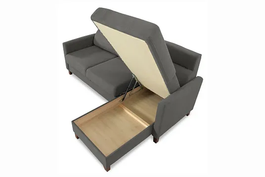 Просторное место для хранения постельных принадлежностей сэкономит ваше время перед сном, а ламинированное основание облегчит уход за диваном.