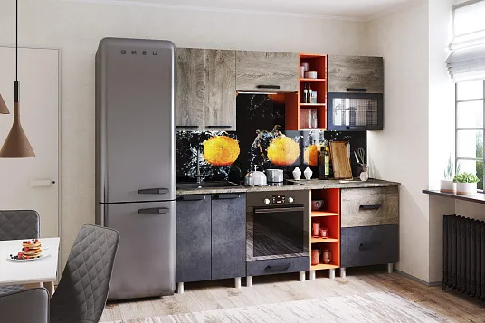 Кухня Крафт 2,1 Дуб Эндгрейн/Бетон темный/Дуб Сонома