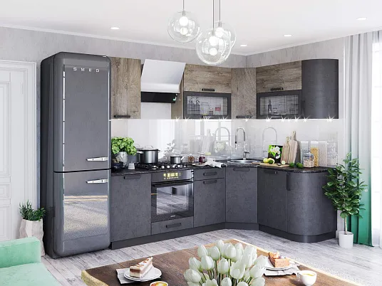 Кухня Крафт 2,45*1,65 Дуб Эндгрейн/Бетон темный/Дуб Сонома