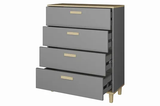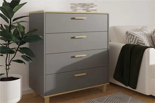 Комод «Брейк» с четырьмя ящиками — стильное и функциональное решение для хранения вещей в современном интерьере. Модель отличается практичностью и вместительностью, что делает её идеальным выбором для организации пространства.
