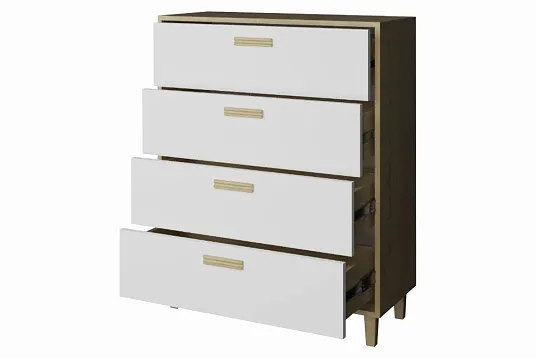 Комод «Брейк» с четырьмя ящиками — стильное и функциональное решение для хранения вещей в современном интерьере. Модель отличается практичностью и вместительностью, что делает её идеальным выбором для организации пространства.