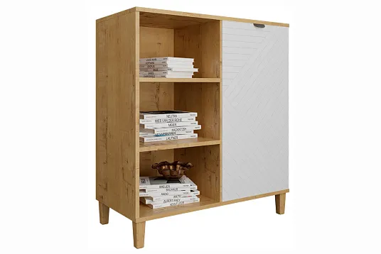 Комод «Роттердам-1» — стильное решение для хранения вещей в современном интерьере. Модель выполнена в элегантной цветовой гамме «дуб бунратти/белый», что придаёт изделию особый шарм и универсальность.