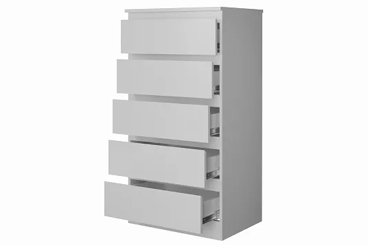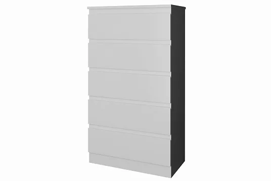 Комод «Твист» Мини с пятью выдвижными ящиками — компактный предмет мебели, выполненный из качественного ЛДСП. Модель оснащена надёжными шариковыми направляющими полного выдвижения, обеспечивающими плавный ход ящиков. Универсальный дизайн и лаконичные формы позволяют использовать комод в различных помещениях: гостиной, спальне, кабинете или детской комнате. Благодаря пяти вместительным отделениям, комод отлично подходит для хранения одежды, белья и других бытовых принадлежностей.
