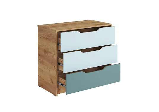 Модульная детская "Rich" славится богатым выбором модулей, что позволяет создать детскую комнату мечты для вашего ребенка. Оригинальные фасады с фрезерованными выемками, которые заменяют ручки. Для безопасности торцевые части кровати-чердака скруглены и облицованы кромкой толщиной 2 мм, а ступени лестницы усилены дополнительными крепежными уголками. Все выдвижные ящики гарнитура оборудованы надежными шариковыми направляющими.