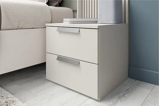 Практичные размеры тумбы позволяют удобно разместить её рядом с кроватью, при этом обеспечивая достаточно места для всех необходимых предметов: от настольной лампы и будильника до личных вещей. Продуманная организация пространства делает хранение максимально эффективным, а доступ к вещам — максимально удобным.