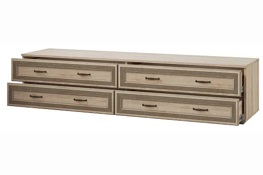 ТВ-тумба ЛТ-2 из серии «Ливорно» — это стильная и функциональная тумба, созданная в духе серии Ливорно. Она имеет широкую верхнюю крышку, на которой можно разместить видеопанель и аудиотехнику. В конструкции тумбы предусмотрены четыре выдвижных ящика, которые открываются бесшумно благодаря шариковым направляющим полного выдвижения. Это идеальное решение для организации пространства и хранения различных предметов.