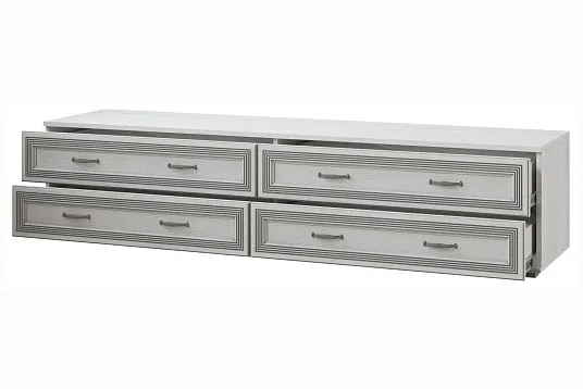 ТВ-тумба ЛТ-2 из серии «Ливорно» — это стильная и функциональная тумба, созданная в духе серии Ливорно. Она имеет широкую верхнюю крышку, на которой можно разместить видеопанель и аудиотехнику. В конструкции тумбы предусмотрены четыре выдвижных ящика, которые открываются бесшумно благодаря шариковым направляющим полного выдвижения. Это идеальное решение для организации пространства и хранения различных предметов.