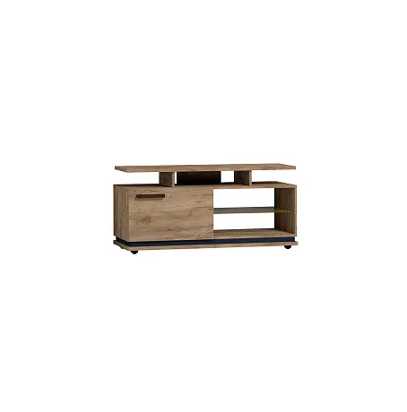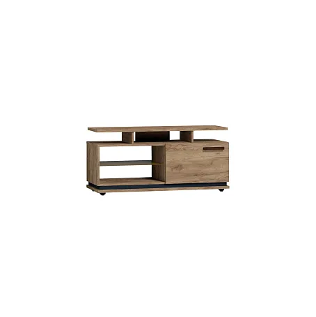 Чтобы сохранить легкость и простор в маленькой гостиной выбирайте Тумба ТВ малая. Низкая мебель сделает комнату просторнее, а стекло в сочетании с древесным декором создаст ощущение простоты. Комбинированный вариант открытых полок со шкафчиком с глухим фасадом отлично подойдет для размещения игровой приставки, дисков и геймпадов. Ширина тумбы позволит без труда разместить телевизор с диагональю до 44''. Регулируемые опоры позволят компенсировать незначительные неровности пола.