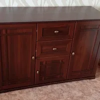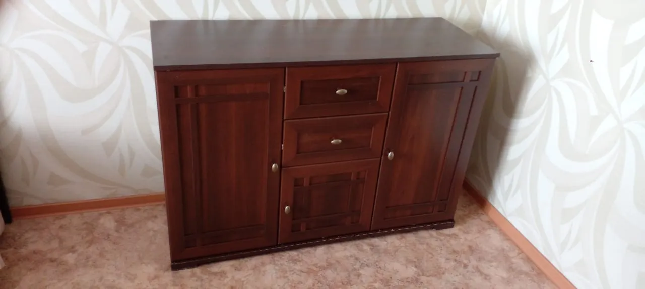 Многоцелевая тумба или широкий комод найдет свое место в любой комнате, включая прихожую и столовую. На ней можно разместить телевизор и использовать как высокую тумбу под ТВ в спальне или гостиной. Распашные фасады по бокам скрывают нишу с полкой, регулируемой по высоте. Два центральных ящика благодаря надежным шариковым направляющим выдерживают нагрузку до 20 кг каждый. Глубина ящика 35 см, высота 12 см, ширина 36 см.