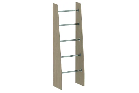 Прямая лестница подходит для подъёма на верхний ярус кровати, если размеры помещения не позволяют установить приставную лестницу с ящиками. Лестница прикрепляется к кровати рядом с боковым проёмом, обеспечивая доступ на верхний ярус кровати-чердака.
