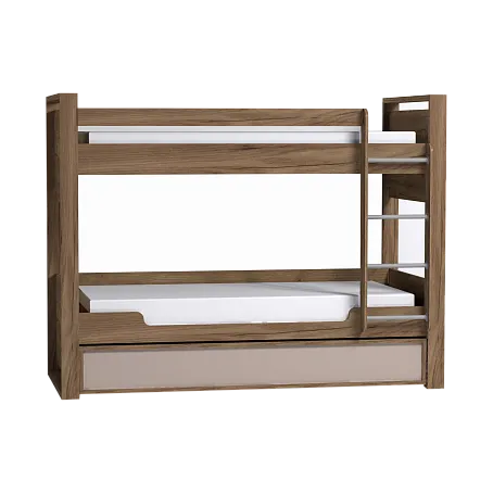 Отличным решением, позволяющим сэкономить место в небольшой квартире, будет двухъярусная кровать. В комплектации кровати - лестница с металлическими перекладинами диаметром 2.5 см. Помимо спального места, на верхнем и нижнем ярусах кровати имеются дополнительные боковые ниши, которые помогут подростку держать под рукой необходимые перед сном вещи. Размер матраса для спального места: 190 х 90 см, высотой до 18 см. Хранить постельное белье будет удобно в выдвижном ящике на выкатных роликах. При необходимости можно организовать дополнительное спальное место другу, который останется ночевать. Для этого достаточно убрать разделитель и положить матрас. Размер матраса для дополнительного спального места: 190 х 80 см, высотой до 18 см. Ещё одно из преимуществ этой кровати - встроенное зарядное устройство CHARGE-S USB. Используется для зарядки мобильных телефонов, планшетов. Устройство имеет компактные размеры, что позволяет разместить его прямо в нише кровати. Такая функциональная кровать не оставит равнодушными ни родителей, ни детей.