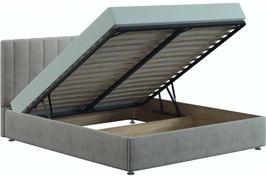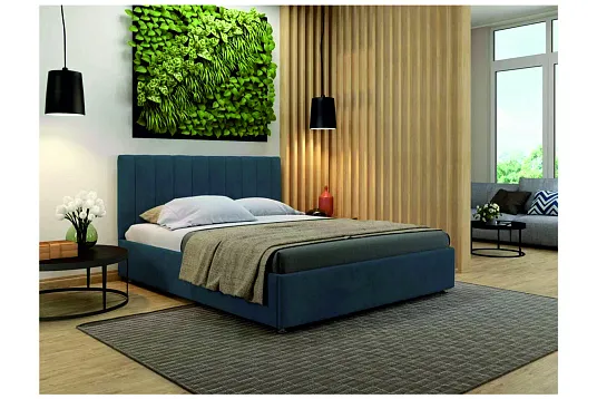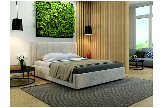 Интерьерная кровать Жардин Нова обладает чёткими прямыми формами и объёмностью, что делает спальню изысканной и элегантной. Вертикальные линии спинки кровати придают благородство и универсальность внешнему виду. Каркас из ДСП, обтянутый тканью, создаёт ощущение строгости, обеспечивая при этом лёгкий доступ к вещам. Эта модель определённо станет ярким акцентом в современном интерьере комнаты для сна.