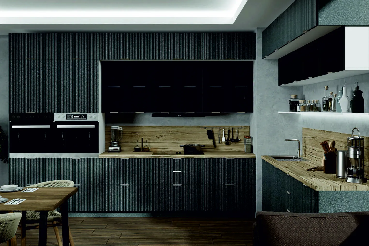 Эти фасады не только красивы, но и практичны. Они визуально обогащают пространство, добавляя ему глубины и объема. Вы можете выбрать, какие именно участки кухни сделать рифлеными, чтобы создать уникальный дизайн, который будет отражать ваш вкус и стиль.