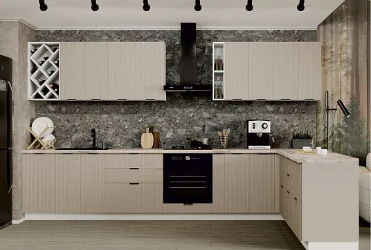 Кухня БРИЗ - это воплощение стиля и функциональности. Рифленые фасады в стиле "а ля гофрен" и "крекий" создают уникальный визуальный эффект, который делает интерьер более выразительным и современным.