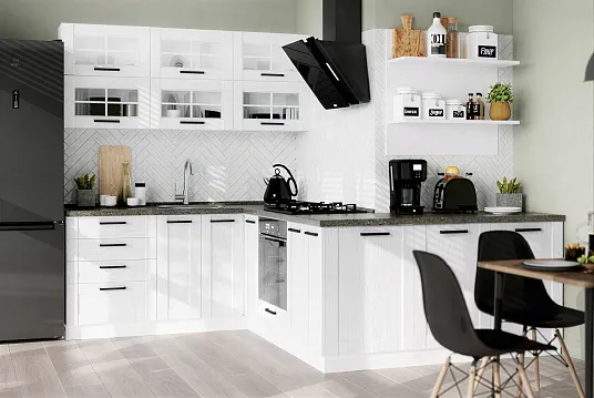 Модульность: Большой выбор модулей различного размера и функционала позволяет собрать гарнитур для любого метража и планировки. Есть готовые решения для встраивания всей необходимой техники.Комплектация: Базовая поставка включает корпус и фасады. Мойка, сушка и ручки подбираются отдельно, что даёт вам свободу в деталях.