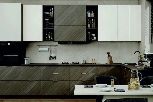 Кухня "Сюита" идеально подойдет для тех, кто ценит простоту и функциональность, а также хочет создать в своем доме атмосферу настоящего городского лофта.