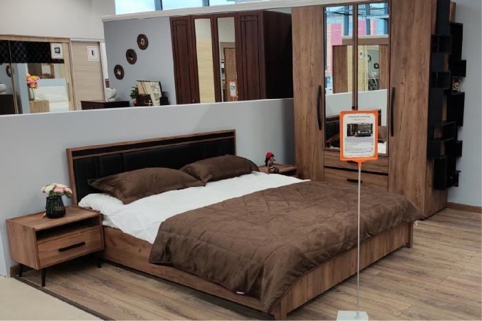 Nature 308 (спальня) Кровать Люкс (1400) Дуб табачный Craft-Черный//