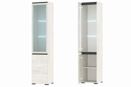 ГРЕТТА Пенал-витрина 1В1С Крафт белый-Антрацит