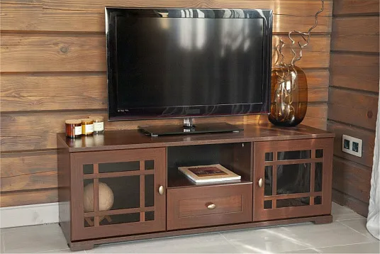 Неглубокая ТВ Тумба в классическом стиле позволит аккуратно разместить в гостиной всю видео и аудио аппаратуру. Центральная ниша шириной 37 см. Выдвижной ящик (глубиной 35 см, высотой 12 см и шириной 36.5 см) на шариковых направляющих можно не устанавливать, чтобы увеличить размер ниши в высоту.