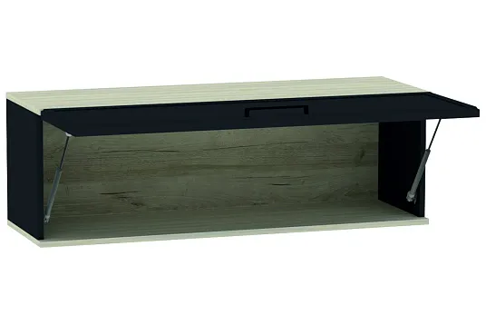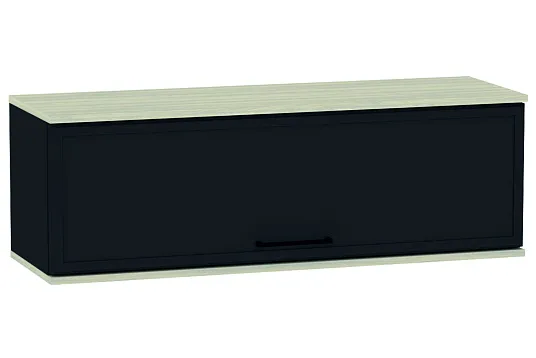 Навесной шкаф может служить автономным элементом для хранения книг и канцелярских принадлежностей в рабочей зоне комнаты.