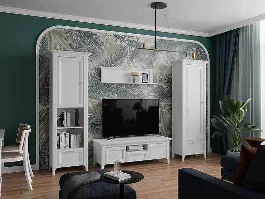 Гостиная "Клер" светлая, уютная и современная! Полка крепится на стену, если полка будет расположена между шкафами, то дополнительно рекомендуем прикрепить к бокам шкафа. Также данный предмет будет отлично сочетаться с односпальной кроватью с ящиками из этой коллекции.