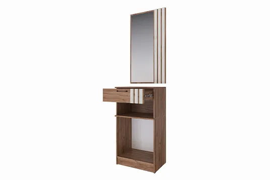 Тумба с зеркалом Кано КПТ — это стильный и функциональный предмет мебели для прихожей. Благодаря удобному ящику и дополнительному отсеку, она обеспечивает достаточно места для хранения различных предметов, таких как ключи, документы, аксессуары, обувь и сумки. Зеркало визуально увеличивает пространство и позволяет быстро подготовиться к выходу из дома.