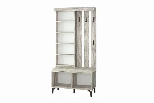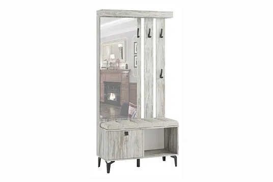 Центральная секция «Милан» — отличный вариант для вашей прихожей. Вешалка с крючками вместит всю верхнюю одежду, а антресольная полка подойдёт для головных уборов. Зеркало поможет подобрать аксессуары. В нижних отделениях можно хранить обувь. Полки за дверцей с зеркалом подойдут для косметики, украшений и других вещей. Сиденье с мягкой обивкой «Честер» добавит уюта.