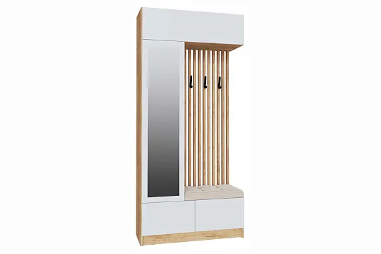 Прихожая «Руэлла» — это стильный и практичный элемент интерьера, который станет изюминкой вашего дома. Она оборудована множеством ящиков и полок для удобного хранения вещей, а также зеркалом, которое позволит вам всегда выглядеть модно и элегантно.