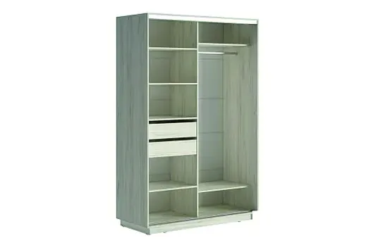 Шкаф оснащён полками и металлической штангой для одежды., позволяющими максимально эффективно использовать пространство и хранить разные предметы одежды, обуви и аксессуаров. Он станет незаменимым помощником в организации пространства и хранении вещей.