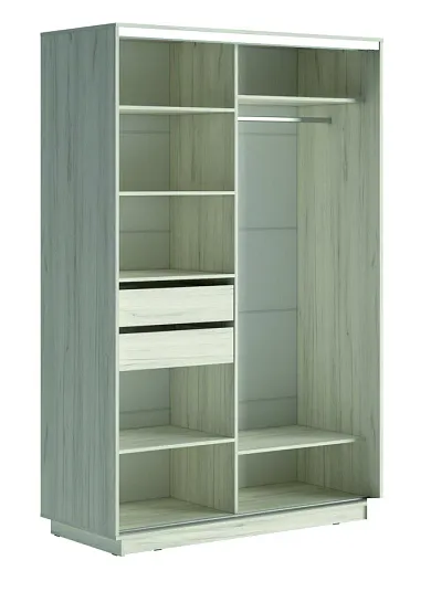 Шкаф оснащён полками и металлической штангой для одежды., позволяющими максимально эффективно использовать пространство и хранить разные предметы одежды, обуви и аксессуаров. Он станет незаменимым помощником в организации пространства и хранении вещей.
