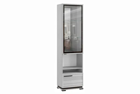 Гостиная Модена МШ-3 Пенал со стеклом Ясень Анкор светлый/Венге Цаво