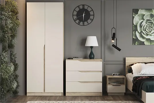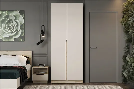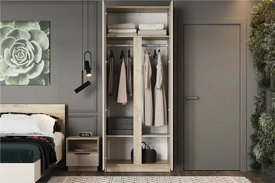 Двухстворчатый шкаф «Лавена» — практичное решение для организации пространства в спальне, прихожей или гардеробной, которое сочетает продуманную конструкцию и современный дизайн для создания уюта и порядка в доме.