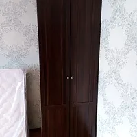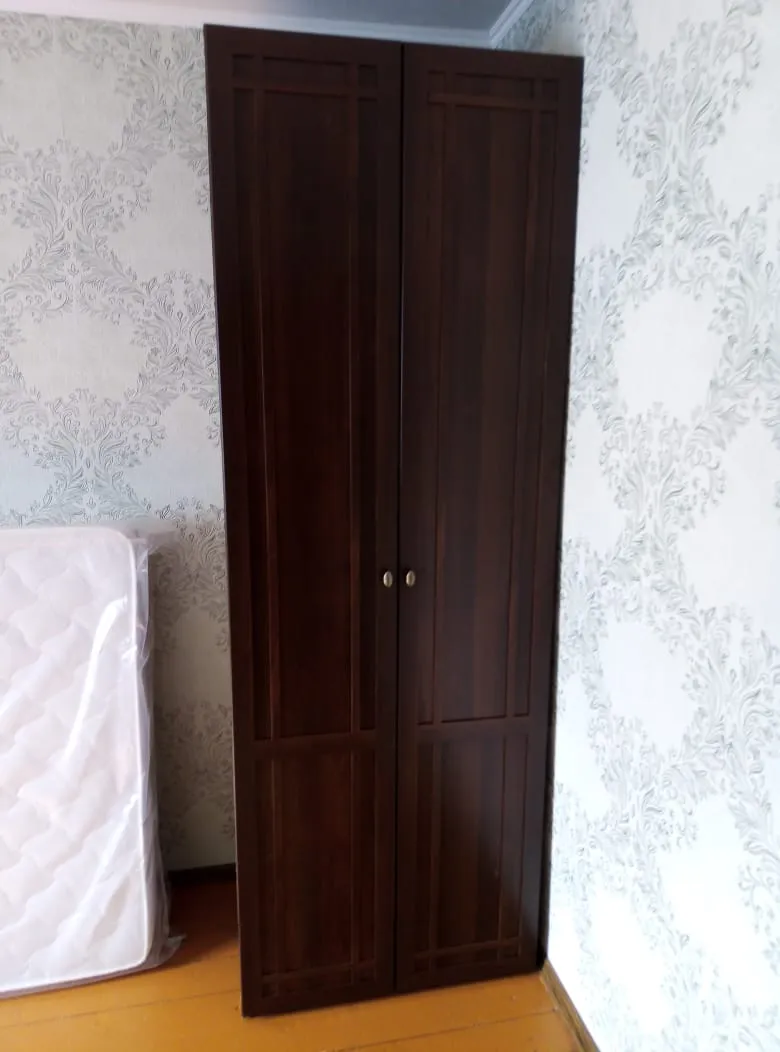 Особенности: рамочные фасады из профиля МДФ; крепится на стену за подвесы; стационарная штанга для одежды.