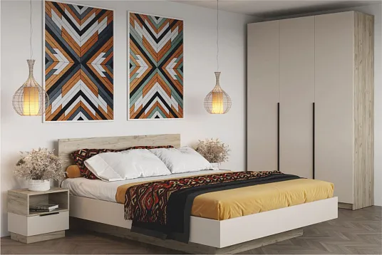 Универсальный распашной шкаф будет служить удобным местом для хранения вещей в спальне.