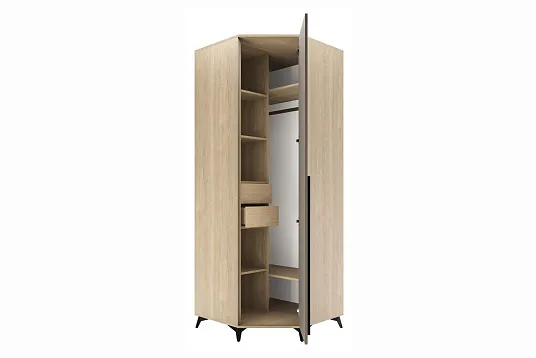 Этот угловой шкаф станет отличным выбором для тех, кто стремится создать гармоничный интерьер, сочетающий в себе практичность и современный стиль.
