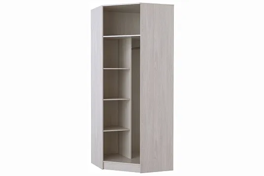 Шкаф угловой "Сабина" предоставит достаточно места для размещения всей вашей одежды. За распашной дверью находится штанга для вешалок. Множество полок пригодятся для аккуратного хранения одежды, постельного и нижнего белья, головных уборов, коробок с обувью и разнообразных аксессуаров.