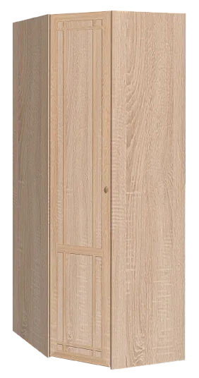 Угловой высокий шкаф использует рационально самую сложную площадь в комнате - угол. Он комплектуется внутренним стеллажом с регулируемыми по высоте полками и стационарной штангой для верхней одежды. Длина штанги 817 мм, что позволит свободно развесить более 10 плечиков с зимним гардеробом. Встроенная автоматическая подсветка поможет сориентироваться и быстро найти необходимое. Она включается только при открытой двери.