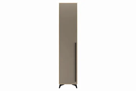 Современный дизайн подчеркивается стильной черной металлической ручкой-рейлингом, которая обеспечивает удобство в использовании, а устойчивые ножки-опоры гарантируют надежную фиксацию конструкции. Этот пенал станет практичным дополнением для любой комнаты, где требуется эффективное использование вертикального пространства.