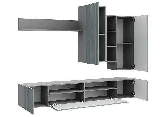 СКАНДИ Стенка МДФ НМ-001 ( Комплект )Корпус - Серый Шифер Фасад МДФ - матовая Грин Грей Софт