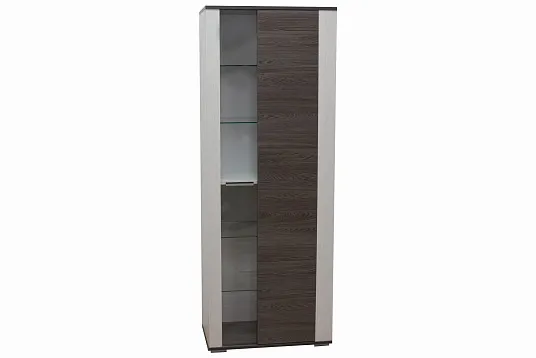 Практичная конструкция (ширина 700 мм, высота 1880 мм, глубина 380 мм) сочетает в себе функциональность и современный дизайн. Качественные материалы — ЛДСП и прозрачное стекло — обеспечивают долговечность и привлекательный внешний вид изделия.