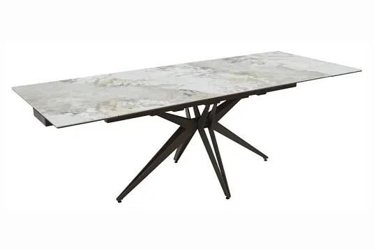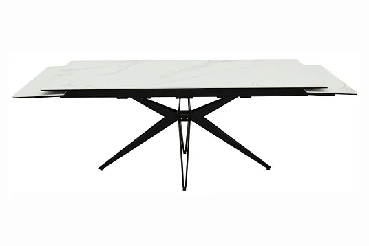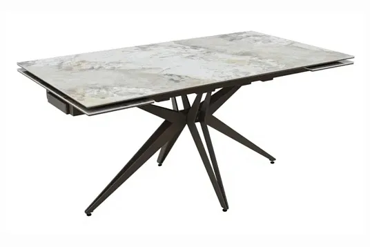 Обеденный стол с двумя торцевыми механизмами для подъёма вставок на обновлённом царговом поясе.